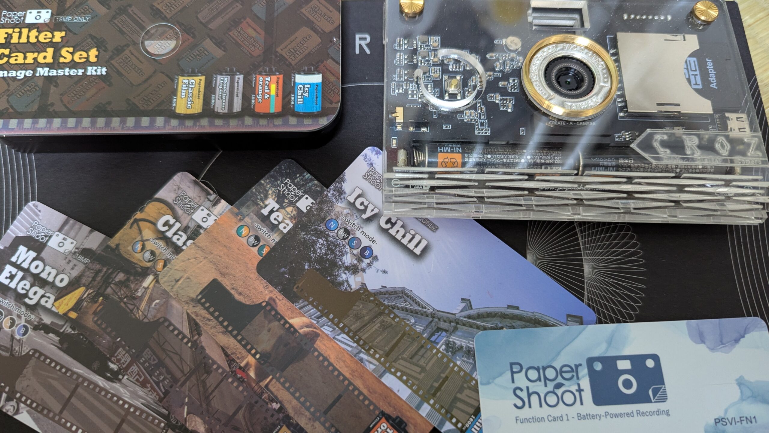 精密な基板がそのまま見えるスケルトン構造や、紙(ストーンペーパー)で作られたケースを気分に合わせて着せ替えられる楽しさは、他のデジカメにはない唯一無二のものです。